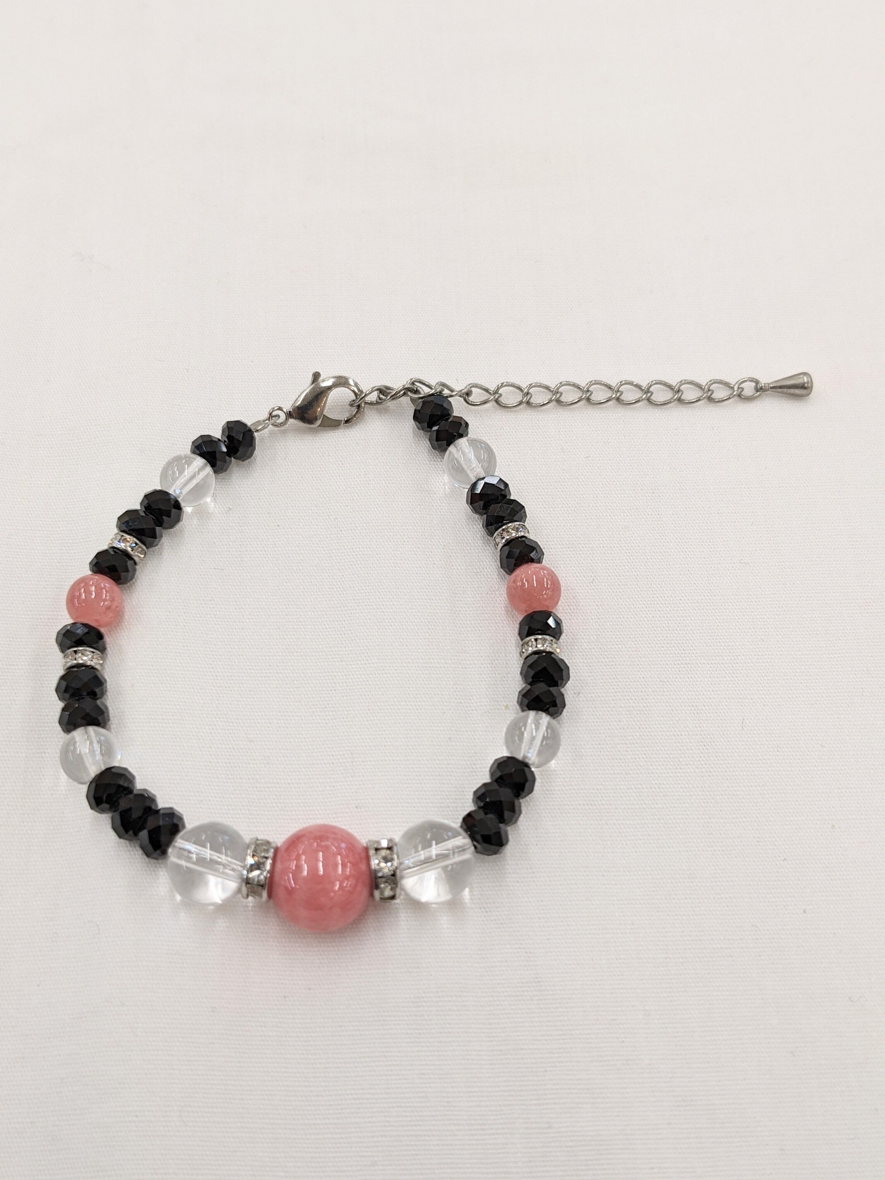 11mmインカローズ、8mm6mm水晶、8mmインカローズ、4mmオニキスカットとロンデルパーツ